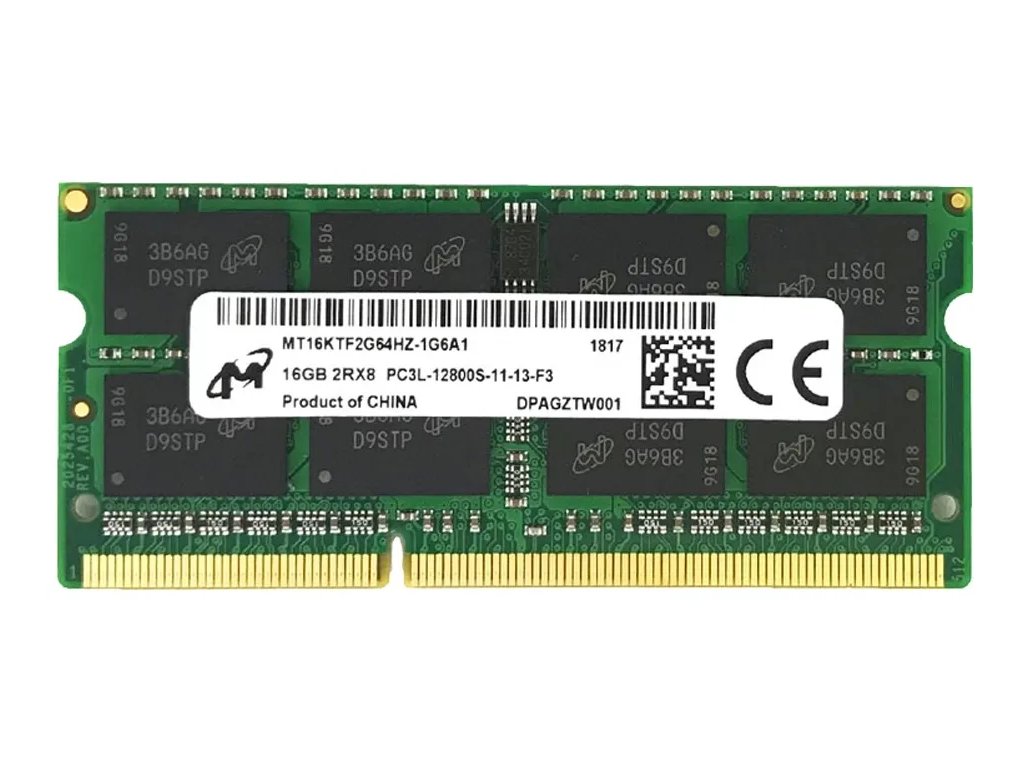 Modelová řada: Micron 1x 16GB 2Rx8 PC3L-12800S-11-13-F3 MT16KTF2G64HZ-1G6A1