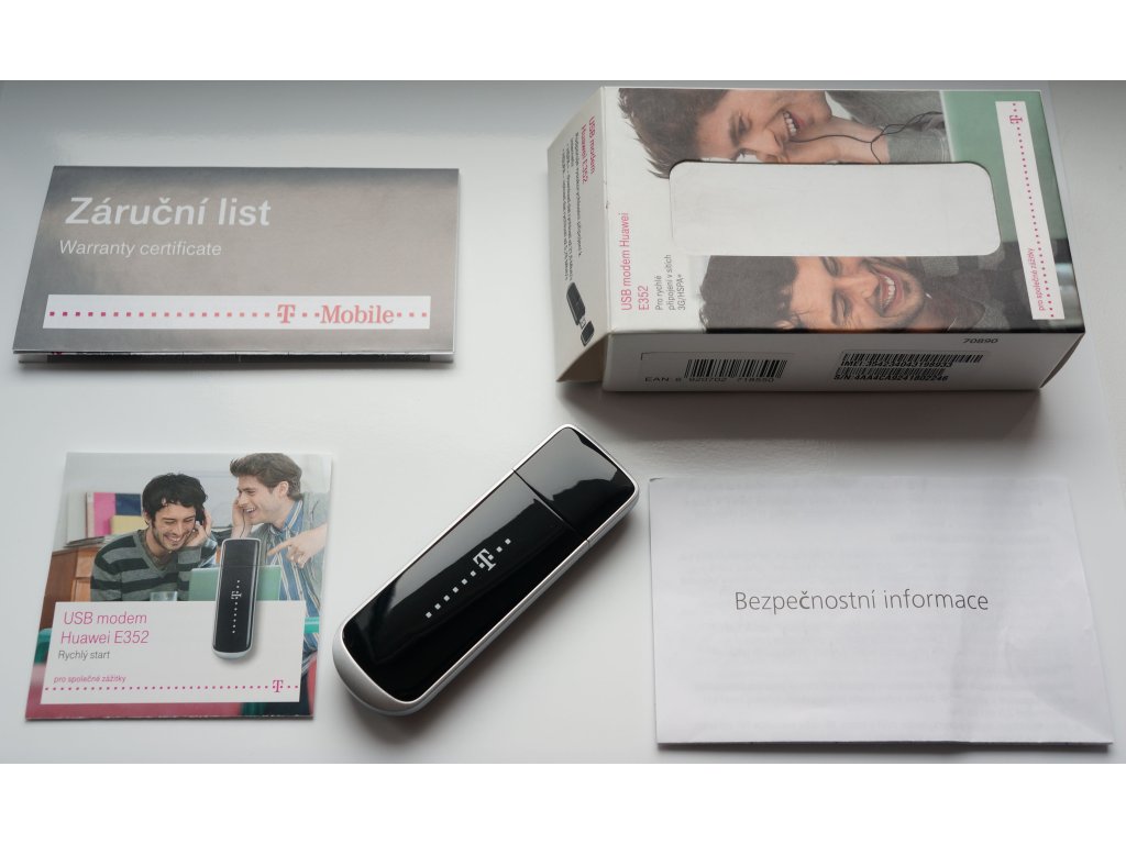 Huawei E352. Typ zařízení: Modem, Základní materiál: Plast, Tržní kategorie: Cestovní. Datová síť: 3G, HSDPA, HSPA+, HSUPA, Podporovaná GSM pásma: 850,900,1800,1900 MHz, Podporovaná UMTS pásma: 2100 MHz. Kompatibilní paměťové karty: MicroSD (TransFlash), Použitelná karta o maximální kapacitě: 16 GB. Hmotnost: 25 g