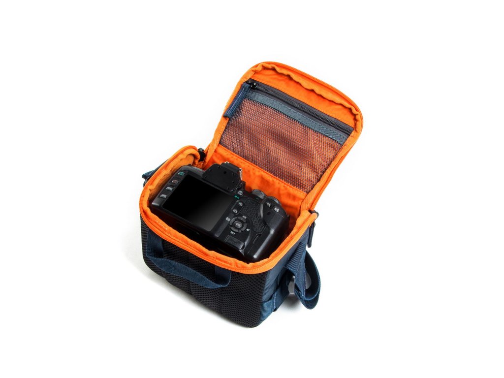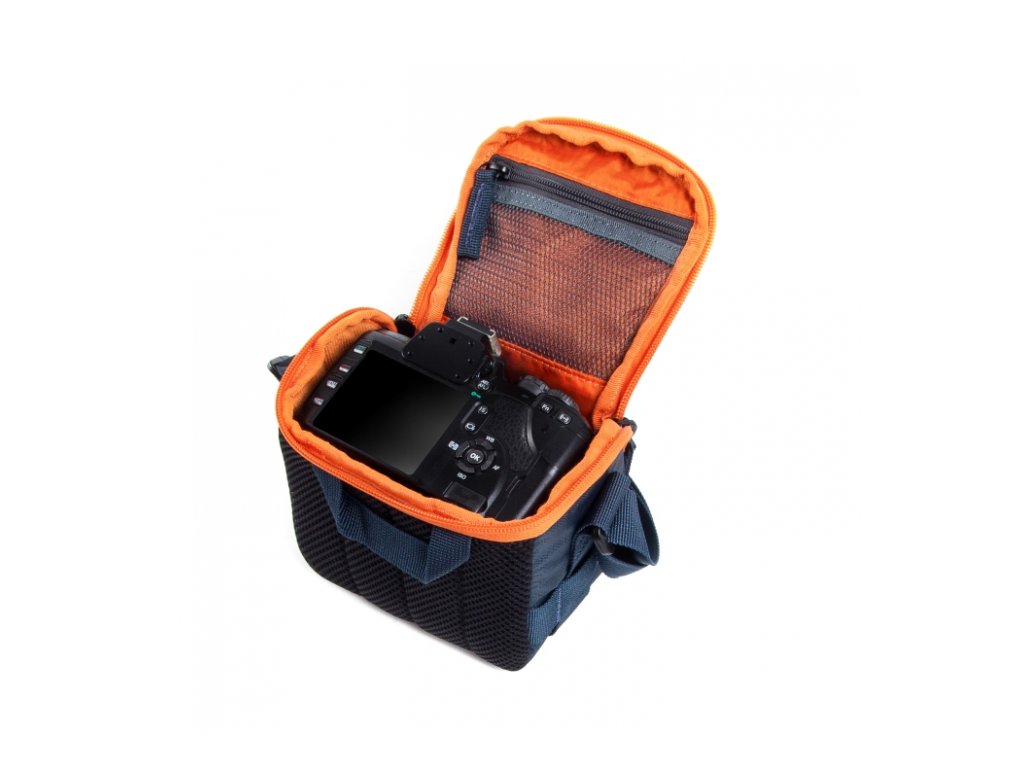 Mezi vrchním neoprenem a vnitřní podšívkou je pěnové polstrování. Velké otvírání směrem od těla zipem s dvěma jezdci, umožňuje rychlý přístup k uložené technice. Vnitřní část je měkce vypolstrována Nylex materiálem a opatřena posuvnou přepážkou k oddělení výměnného objektivu. K uložení drobností jako jsou karty, náhradní baterie atd. poslouží síťovaná kapsa na vnitřní straně víka. Pohodlné nošení a manipulaci zajistí snadno nastavitelný popruh a ucho v zadní části.
