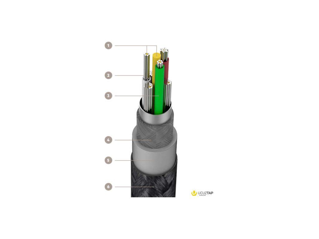 Unikátní technologie kevlarových vláken posílila vnitřní vedení pro zvýšení pevnosti a s vysoce flexibilní izolací se minimalizuje mechanické poškození tak, aby vydržel více než 5000 cyklů ohnutí do 180 stupňů. Kabel je perfektně odolný vůči štěpení a rozbití, protože je vyrobený z pružného TPE, který je hladký a šetrnější k životnímu prostředí než standardní PVC.