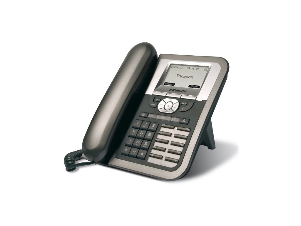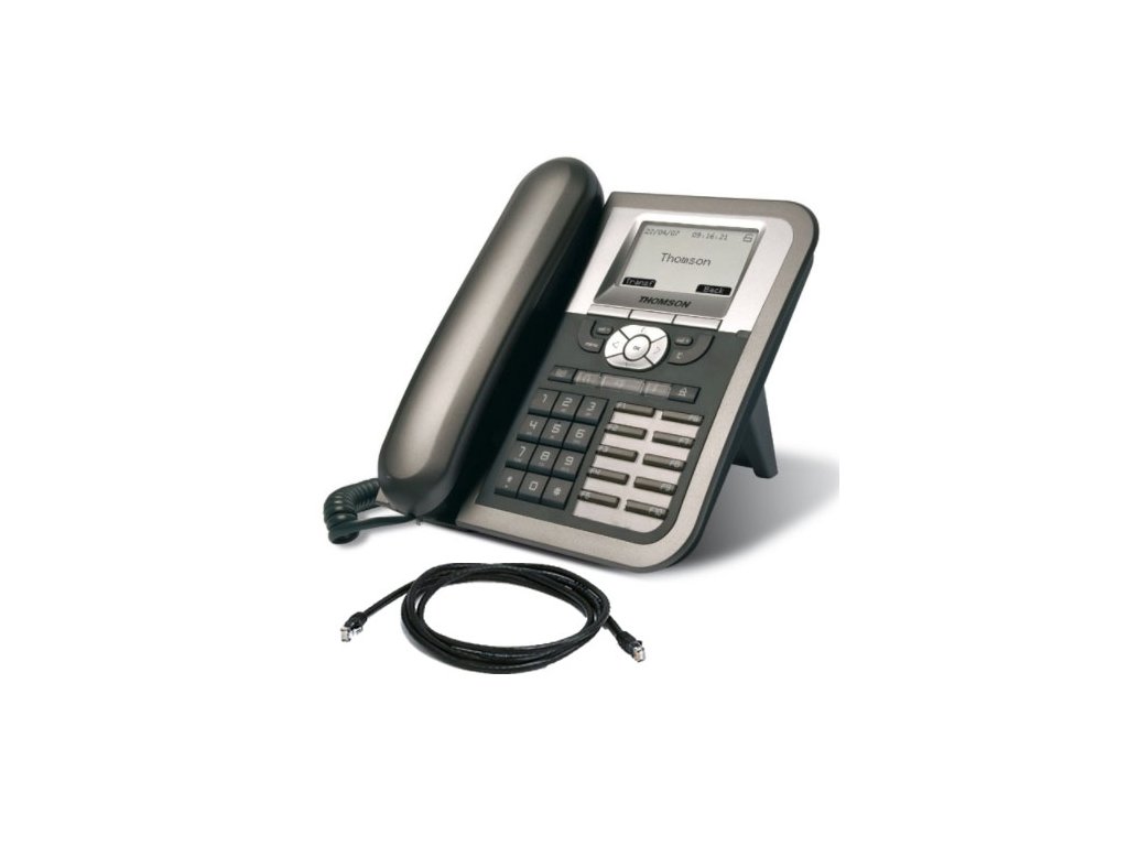 VoIP SIP telefon THOMSON ST2030 s 1 WAN portem a 1 LAN portem (RJ-45) - podpora PoE napájení, lze používat současně až 4 telefonní SIP účty (každý může být u jiného operátora), pětiřádkový displej, možnost připojení náhlavní soupravy.