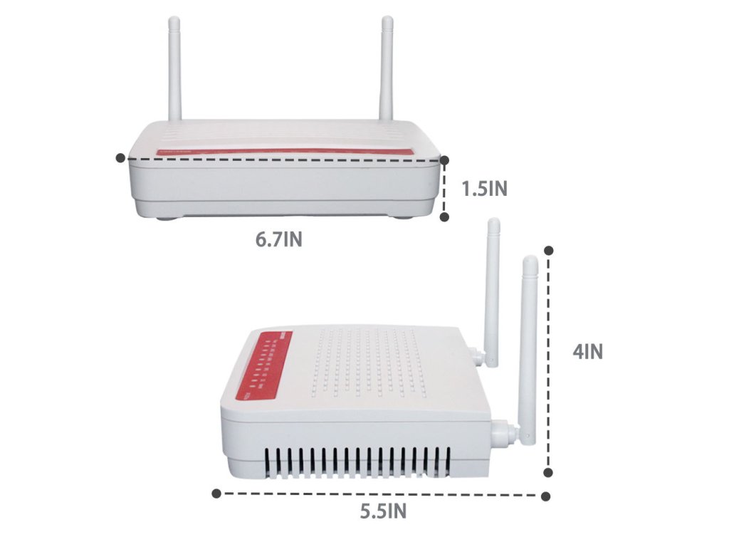 - Bezdrátové připojení Wi-Fi ve verzích 802.11b/g/n pro frekvence 2,4 GHz s rychlostí až 300 Mbit/s. Modem má 2 externí Wi-Fi antény. Rychlost připojení k internetu závisí na objednaném tarifu a místních podmínkách a liší se od maximální rychlosti domácí Wi-Fi sítě.