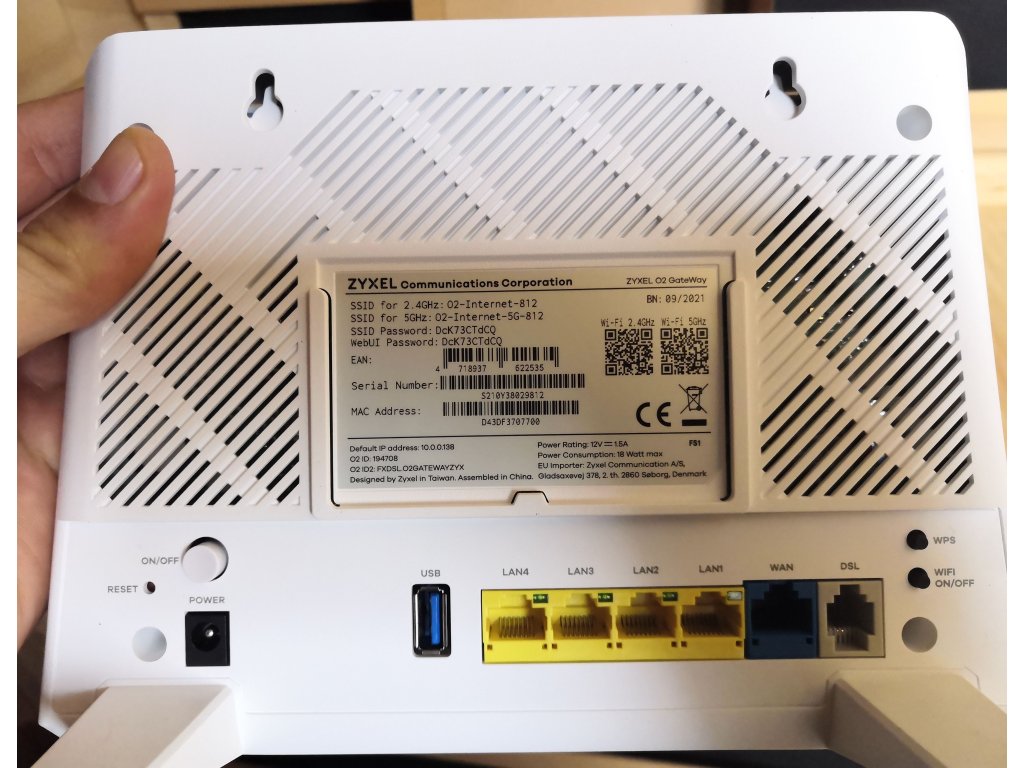 O2 označení: " ZYXEL O2 GateWay V2", (SAP O2 ID: 196048, O2 ID2: FXDSL.O2GATEWZYXV2: 4718937628476)