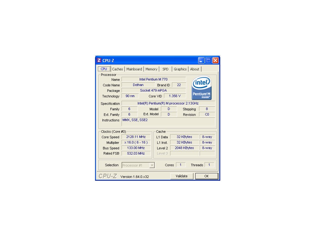 | Processor markings | RH80536 770 2.13/2M/533 |