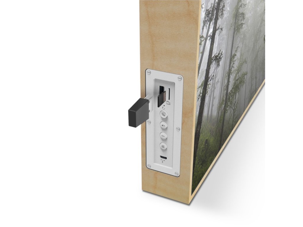 Rozezněte svůj domov oblíbenou hudbou díky všem možnostem připojení, které toto plátno nabízí. Frame Speaker je vybaven přehrávačem MP3 souborů z USB a microSD a vestavěným FM rádiem pro poslech vašich oblíbených rozhlasových stanic.
