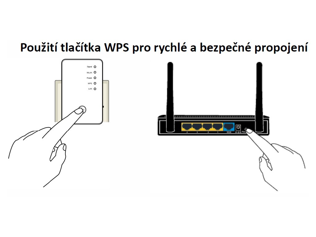 - WPS – tlačítko, díky kterému snadno spárujete s Vaším modemem nebo routerem
