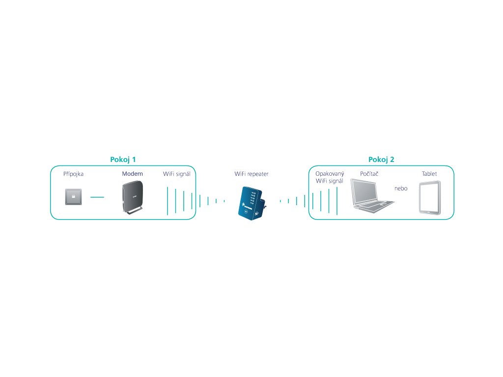 - Wi-Fi opakovač 802.11b/g/n až 300Mb/s