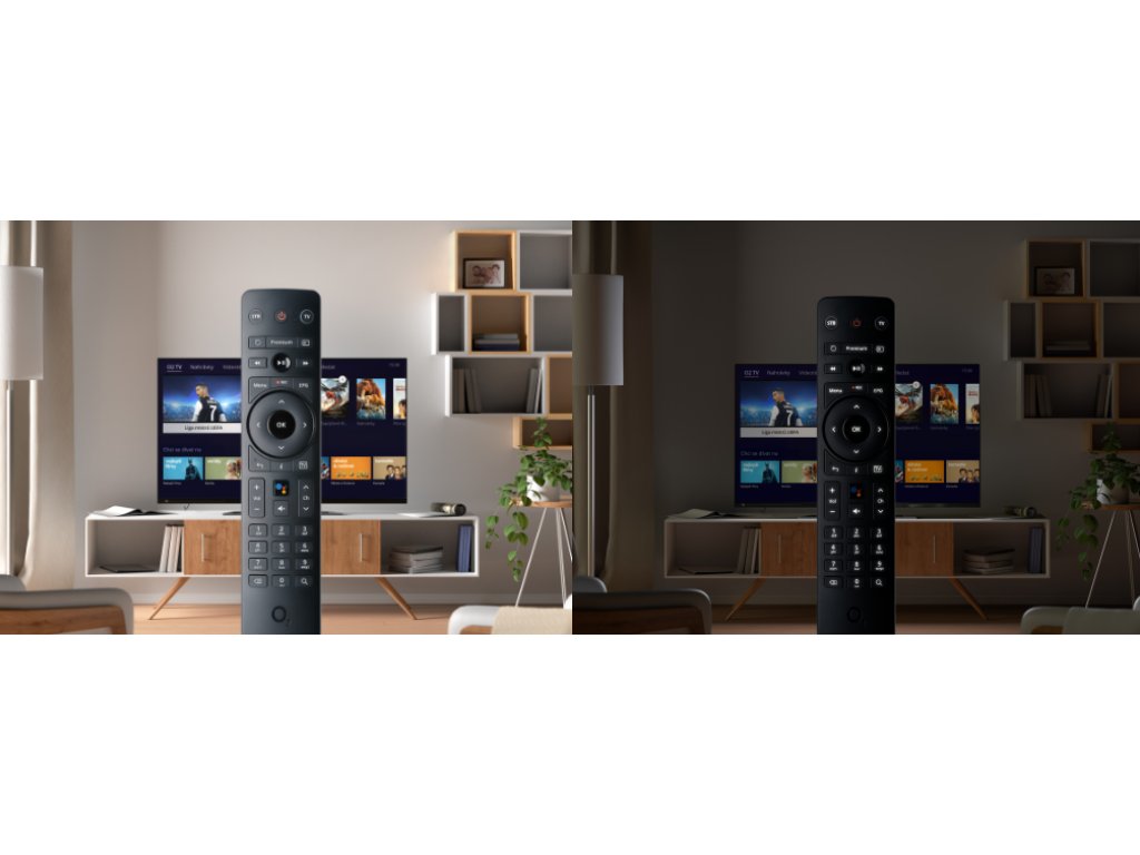 Díky připojení ovladače přes Bluetooth nemusíte mířit přímo na O2 TV Box, když chcete přepnout program. A navíc – ovladač pozná, že je noc a rozsvítí se, když ho vezmete do ruky, abyste viděli na tlačítka. Ovladač vám také skvěle padne do ruky a na saténovém povrchu nezůstanou žádné otisky.