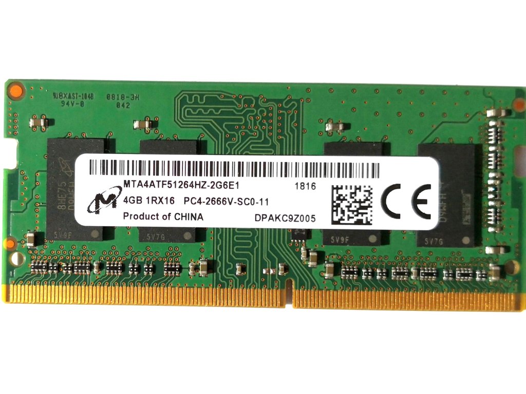 Model: Micron SODIMM DDR4 4GB 1Rx16 PC4-2666V-SC0-11 2666MHz CL19 MTA4ATF51264HZ-2G6E1