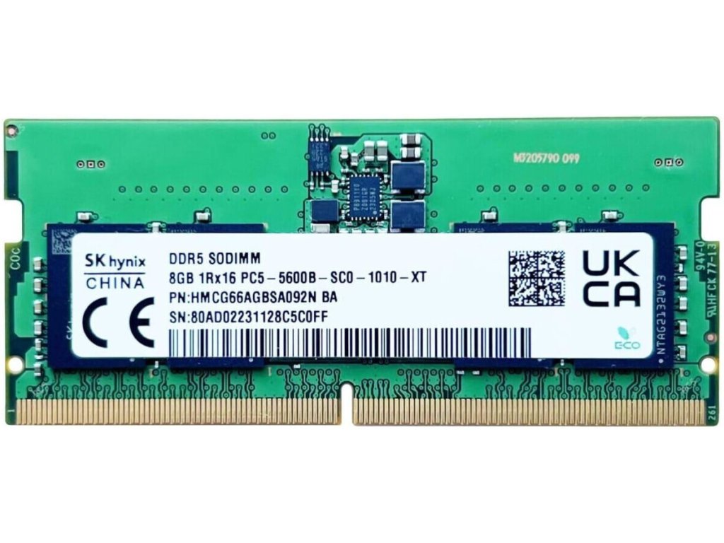Model: SK hynix DDR5 SODIMM 8GB 1Rx16 PC5-5600B-SC0-1010-XT CL46 HMCG66AGBSA092N