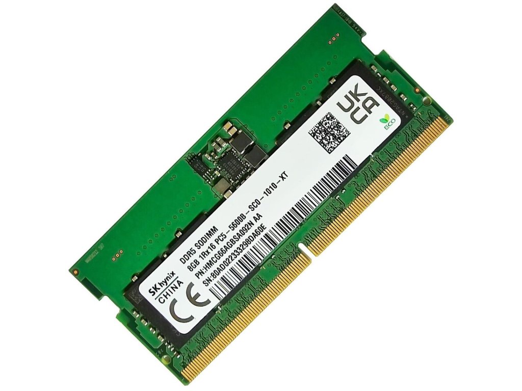 Model: SK hynix DDR5 SODIMM 8GB 1Rx16 PC5-5600B-SC0-1010-XT CL46 HMCG66AGBSA092N